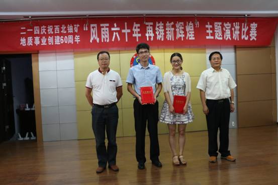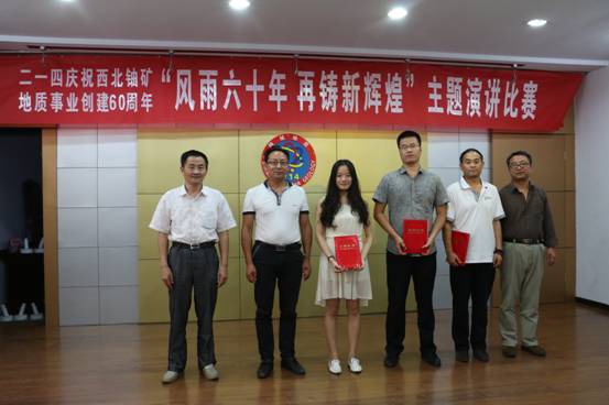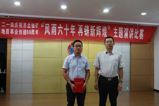 經過激烈的角逐和評委的公開打分,行政人事部王輝演講的《讓青春永遠飛揚》,憑借聲情并茂的演繹感動全場,榮獲比賽一等獎。地調院莊紅紅演講的《追夢尋寶人》、總工辦楊鵬演講的《征程之路-新輝煌》榮獲二等獎;離退辦韓寶明演講的《核地質人的奉獻精神》,黨群監審部唐苾演講的《最美地質勘探隊員》,李輝演講的《風雨六十年 再創新輝煌》榮獲三等獎。公司黨委書記李新平、副總經理司金強、紀委書記工會主席楊乃讓、總工程師王義忠等分別為獲獎選手頒發榮譽證書。