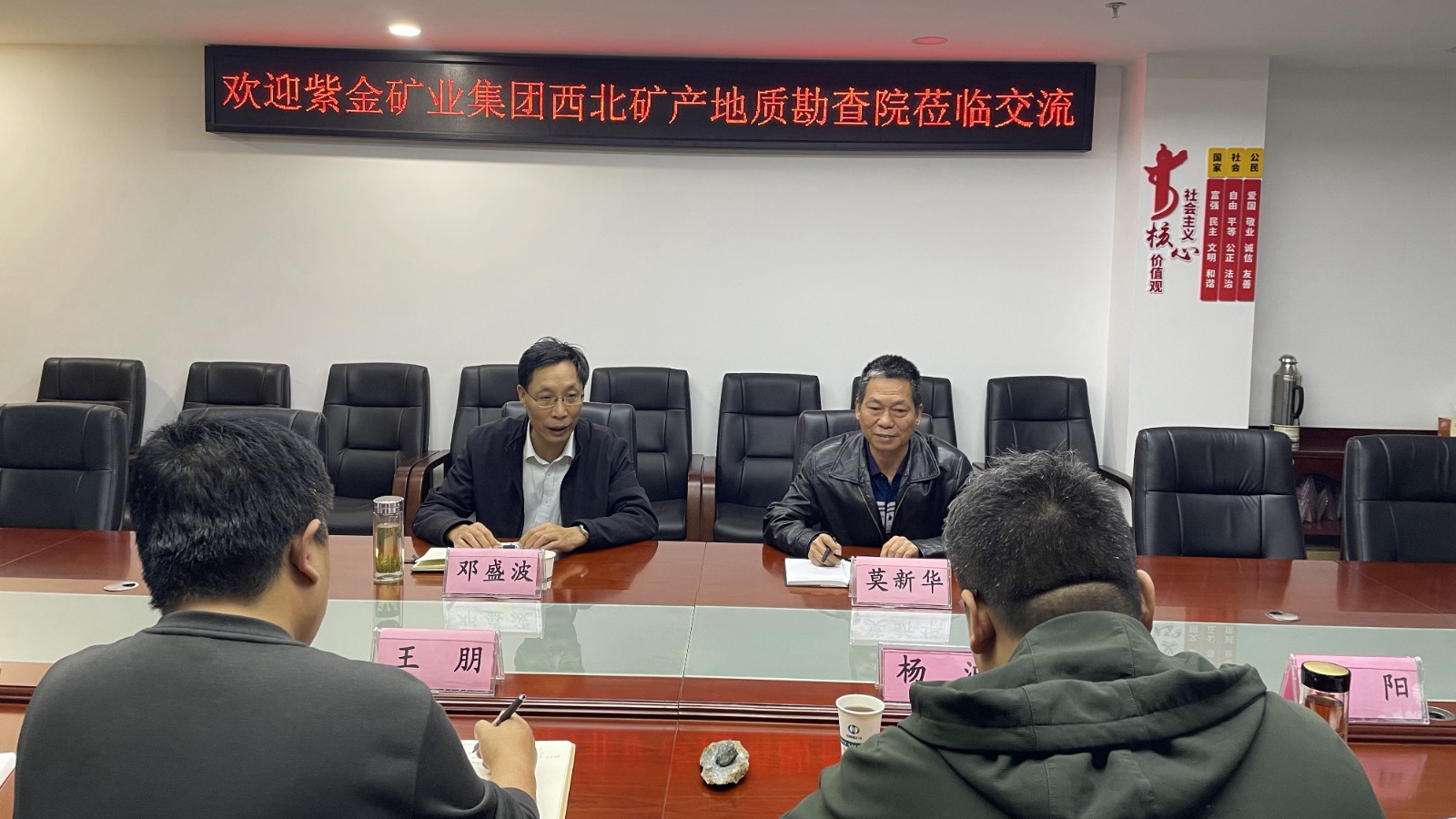 11月4日,紫金礦業(yè)集團(tuán)西北礦產(chǎn)地質(zhì)勘查院院長(zhǎng)莫新華一行蒞臨公司考察交流。公司黨委書(shū)記、董事長(zhǎng)鄧盛波參加座談。