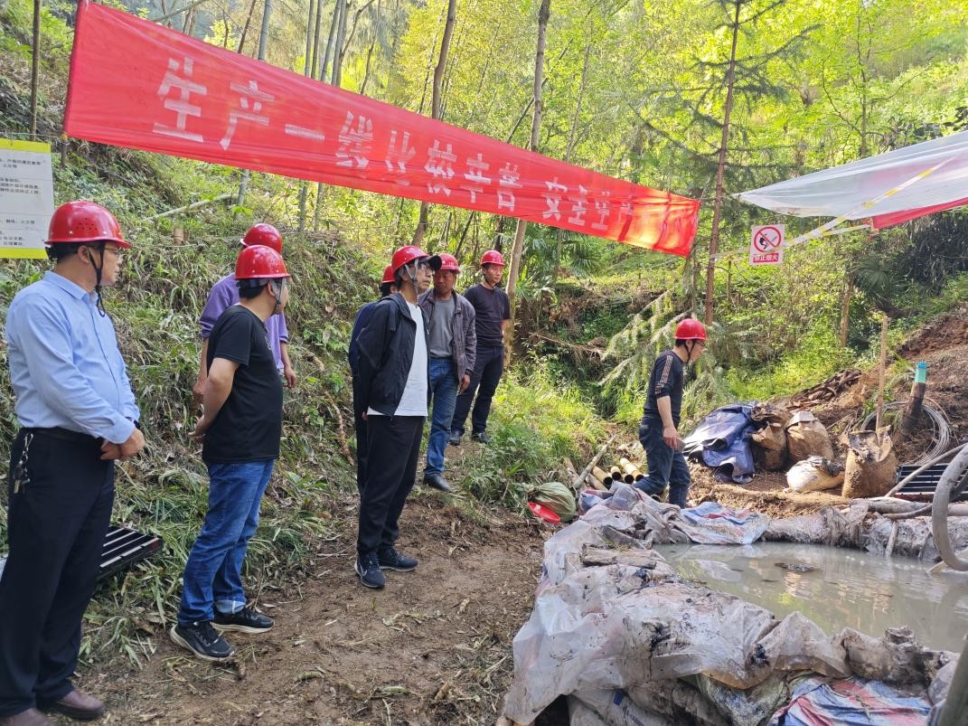 4月11日,集團(tuán)公司副總經(jīng)理胡剛一行前往二一四大隊(duì)寧強(qiáng)縣黃泥坪金礦詳查項(xiàng)目檢查指導(dǎo)工作。公司總經(jīng)理司金強(qiáng)、副總經(jīng)理冉軍林、安環(huán)部副部長張文斌、地調(diào)院副院長仇金林等陪同檢查。