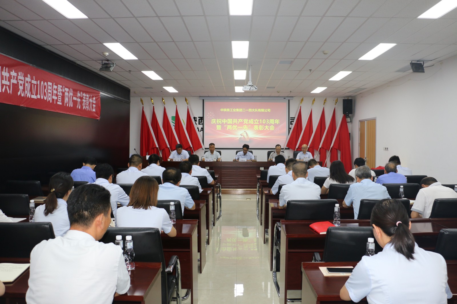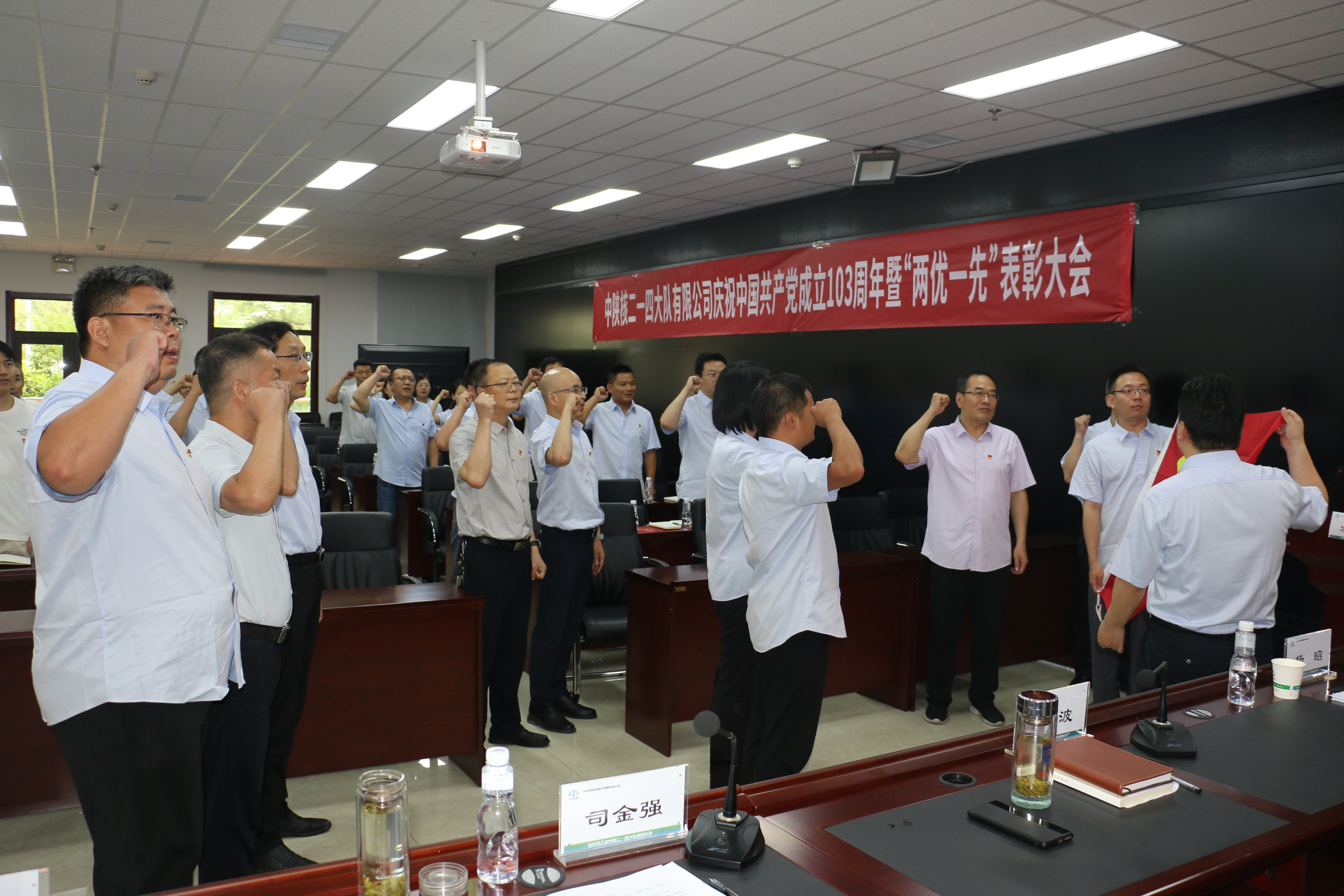 為慶祝中國共產黨成立103周年,6月28日下午,公司召開慶祝中國共產黨成立103周年暨“兩優一先"表彰大會,公司領導班子成員、受表彰人員、基層黨支部委員和機關黨員近50人參加會議。會議由公司黨委副書記、總經理司金強主持。