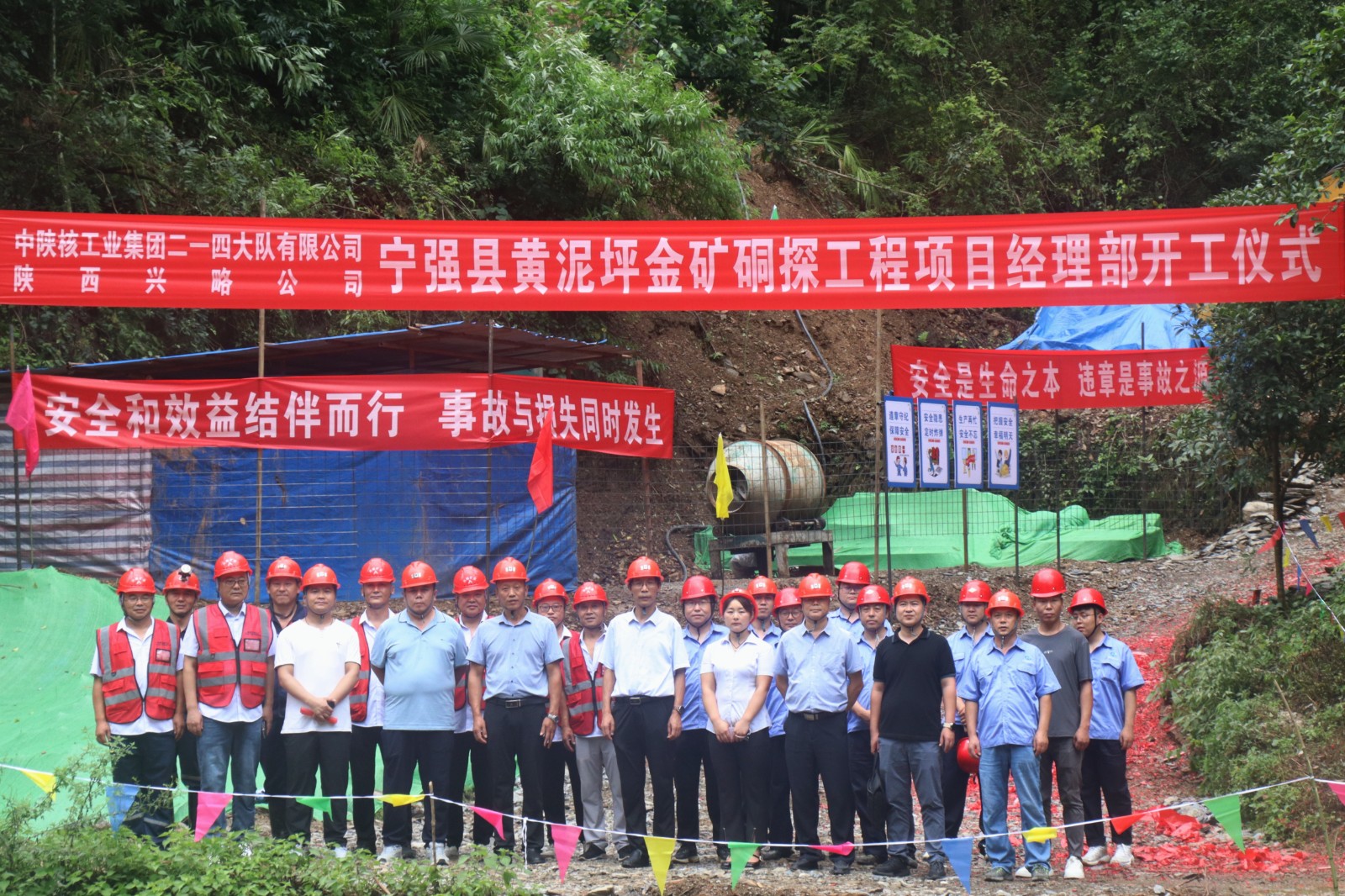 近日,公司寧強縣黃泥坪金礦詳查項目硐探工程已完成機械安裝、開硐檢查、安全驗收等準備工作。8月3日下午,公司黨委書記、董事長鄧盛波,黨委副書記、總經(jīng)理司金強和公司副總經(jīng)理、總工程師王朋,前往施工現(xiàn)場檢查各項準備工作并參加了硐探開工儀式。