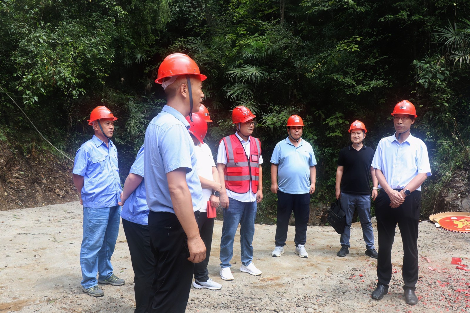 在施工現(xiàn)場,項目負責(zé)人就硐探工程的設(shè)計方案、施工組織、進度安排等進行了詳細的匯報。鄧盛波在聽取匯報后,首先,對項目組全體工作人員前期的付出表示了充分的肯定,對硐探工程施工方興略公司的密切配合、對寧強縣、陽平關(guān)鎮(zhèn)、張家河村三級政府的鼎力支持和幫助表示感謝。隨后,鄧盛波對硐探工程的施工提出了三點要求:一是要高規(guī)格強化安全生產(chǎn),提升安全管理等級,現(xiàn)場要依章依規(guī),規(guī)范操作;二是要高標準把控工程質(zhì)量,硐探工程施工質(zhì)量和地質(zhì)編錄質(zhì)量要全部達標;三是要高效率地組織施工,二一四大隊、興略公司、民爆公司三方要通力協(xié)作、有序銜接,如期圓滿完成施工任務(wù)。