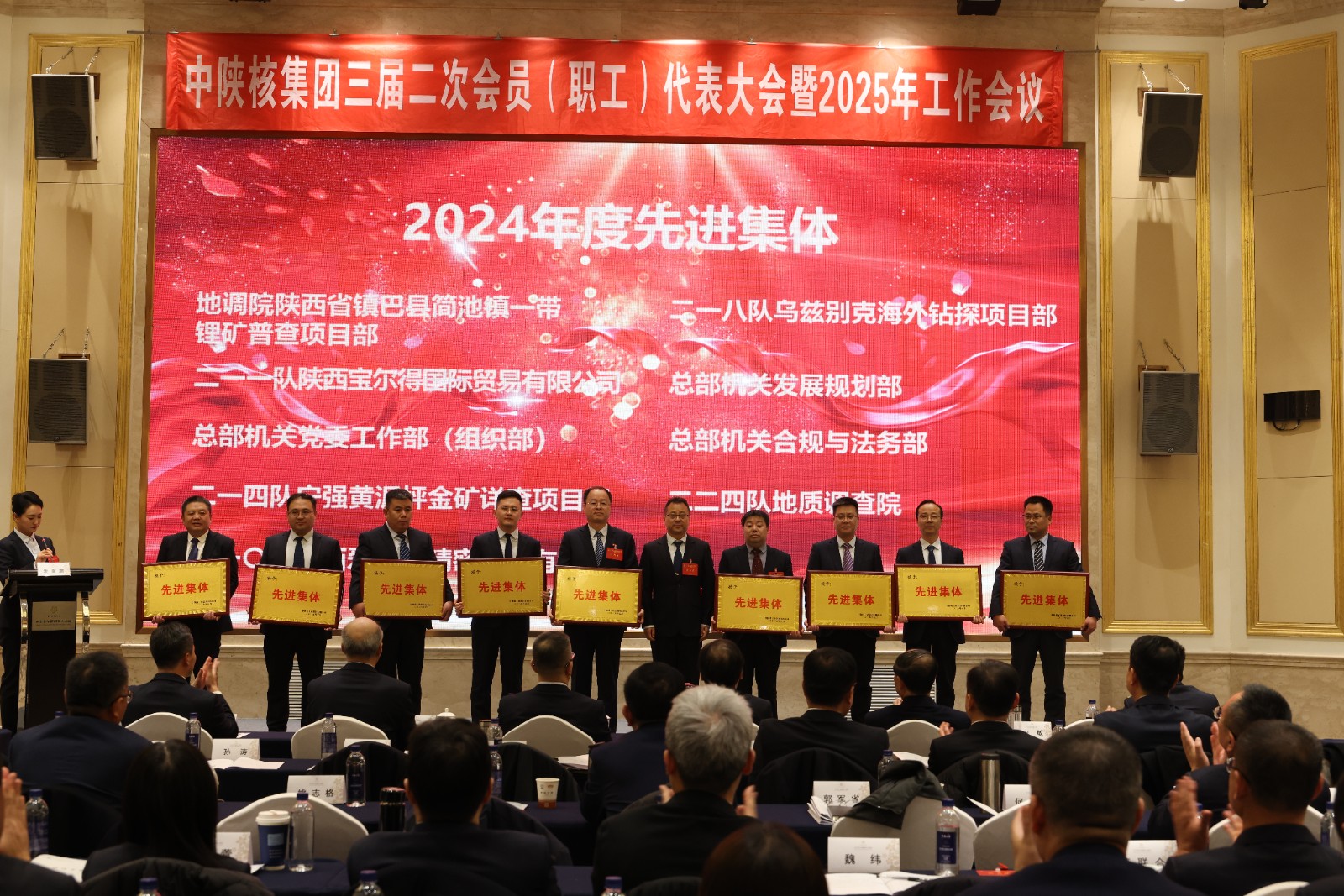 2025年1月18日,中陜核集團召開三屆二次會員(職工)代表大會暨2025年工作會議,公司榮獲集團“創新創業獎”、黃泥坪金礦詳查項目組榮獲集團“先進集體”和“安全環保先進集體”榮譽稱號。