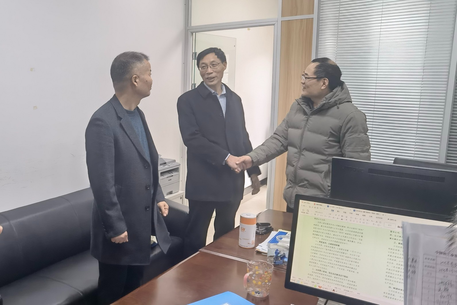 上午九點班子成員每到一處,都與員工們親切握手交談,互拜新年,關(guān)切詢問大家春節(jié)期間的生活情況,對大家過去一年的辛勤努力和付出表示肯定和感謝,了解各部門新一年的工作計劃,并提出新的希望,勉勵大家在新的一年各單位要充分發(fā)揮自身優(yōu)勢,打造自己的工作特色與亮點,為公司發(fā)展注入新活力,再創(chuàng)新佳績;同時,各部門也是公司運轉(zhuǎn)的堅實保障,要進一步通過提升服務(wù)效能,營造良好的內(nèi)部發(fā)展環(huán)境,為公司的穩(wěn)定發(fā)展保駕護航。