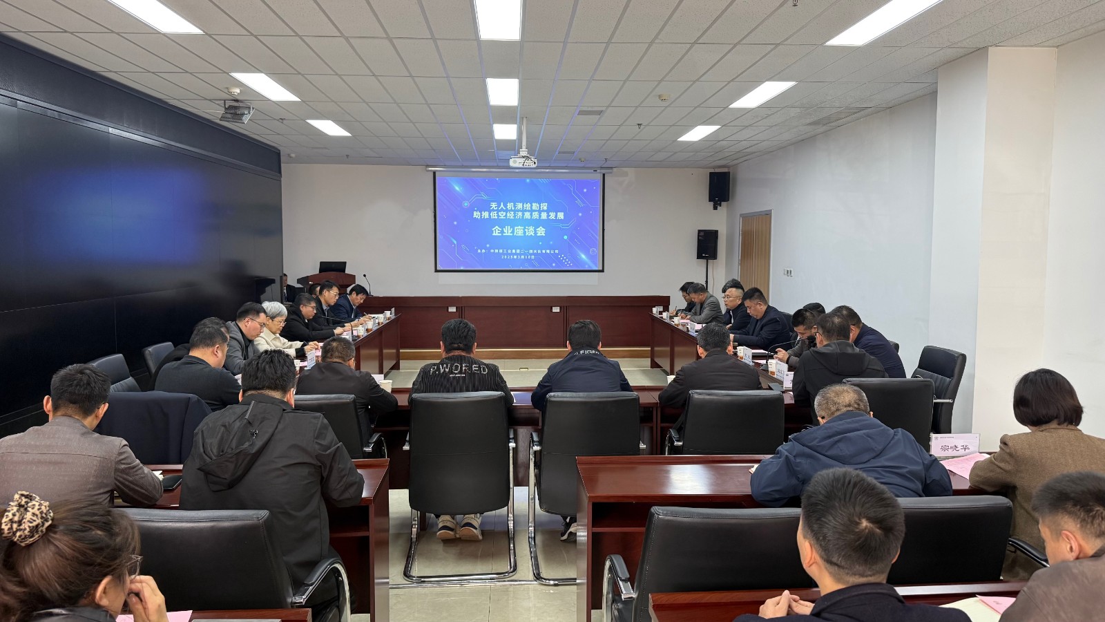 2025年3月10日下午,由中陜核工業集團二一四大隊有限公司主辦的“無人機測繪勘探助推低空經濟高質量發展座談交流會”在西安九鼎產業園順利召開。會議由公司黨委委員、總經理王朋主持。會議匯聚了來自中煤航測遙感集團、中陜核工業集團、陜西地礦集團、陜西省煤田物探測繪有限公司、陜西鑫雅圖空間信息技術有限公司、陜西迪博景源測繪地理信息有限公司等10余家測繪甲級資質單位的30余位行業專家與企業代表,共同探討無人機測繪勘探技術在低空經濟發展中的創新應用與未來方向。