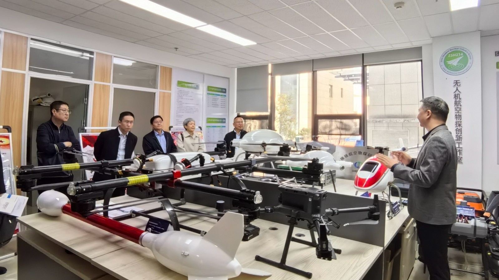專家代表們首先參觀了公司航空物探設備展廳,物化探研究院院長詳細介紹了公司無人機航空物探方法設備以及公司航空物探發展歷程。物化探院副院長分享了項目案例,展示了無人機物探、測繪技術在找礦戰略突破行動、礦山隱蔽致災因素普查治理、危險源探測、山水林田湖草沙調查監測等應用場景中的應用成果。