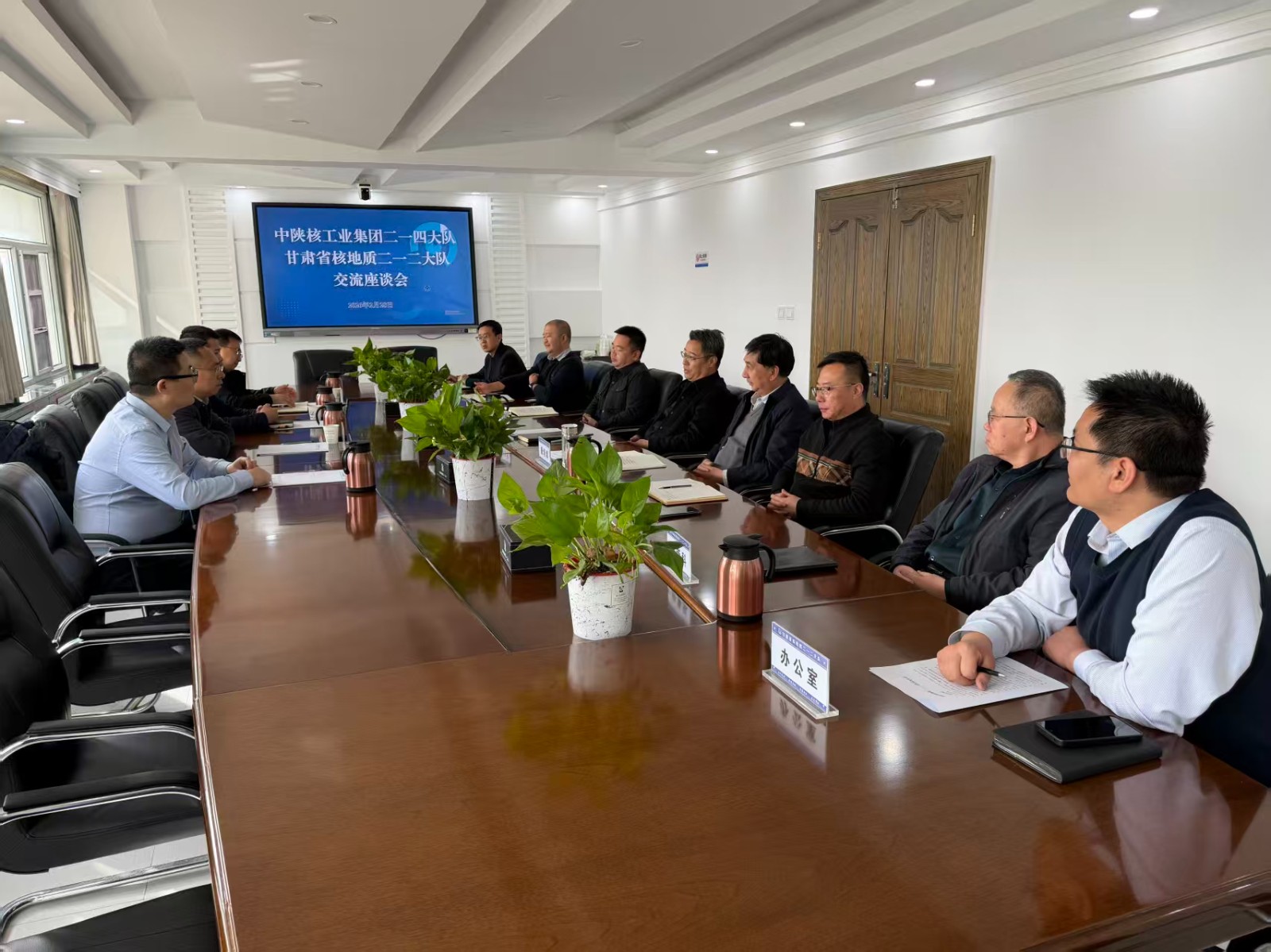 中陜核工業集團二一四大隊有限公司副總經理高政偉,甘肅核地質二一二大隊黨委副書記、副大隊長唐培斌,黨委委員、副大隊長王騰輝,黨委委員、總工程師張立勍,黨委委員、副大隊長林兆民,以及雙方相關部門負責人參加座談。