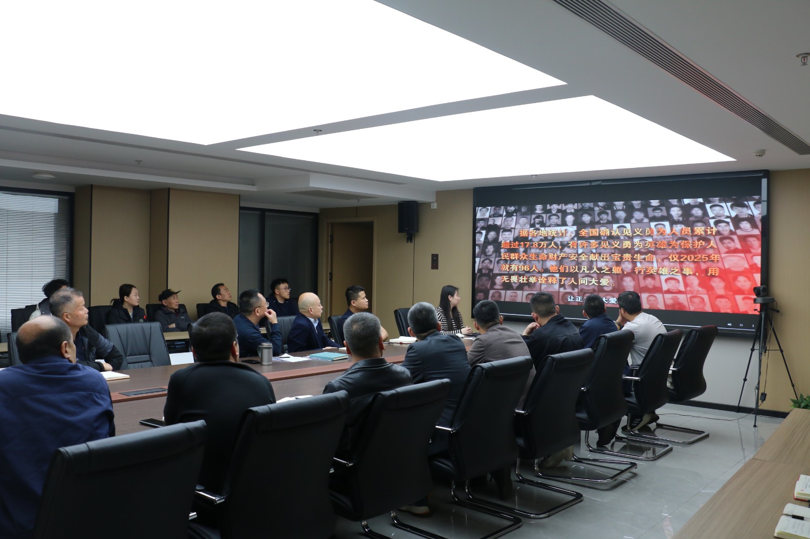 宣講結束后,全體職工共同觀看了見義勇為英雄事跡視頻,視頻真實呈現了金城龍、宋玉軍、張軍橋等英雄在危急時刻挺身而出、舍己救人的英勇瞬間與感人壯舉。一個個義無反顧的身影、一幕幕催人淚下的場景,讓全體職工接受了一場深刻的精神洗禮。大家深刻感悟英雄們臨危不懼、舍生取義的崇高品格,進一步堅定聽黨話、跟黨走的政治自覺,厚植愛黨愛國、敬業奉獻的深厚情懷。