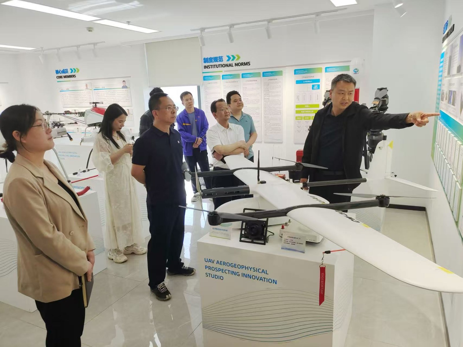 座談前,許德如一行實地參觀了二一四隊無人機航空物探創新工作室,詳細了解了公司在航空物探領域的技術研發、成果轉化與應用成效,對二一四隊在技術創新方面的前瞻布局與扎實實踐給予高度評價。
