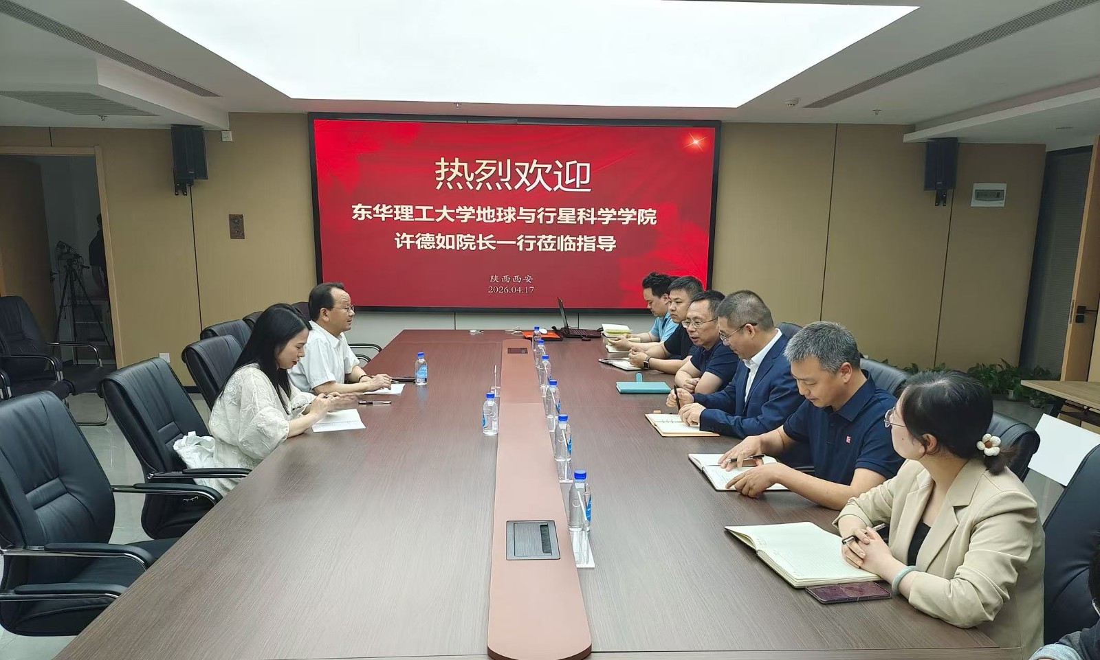 4月17日,東華理工大學地球科學學院黨委副書記、院長許德如一行赴二一四隊開展座談交流,共商校企合作、共謀協同發展。二一四隊黨委書記、董事長付星主持座談會,宜威公司總經理陳晶,二一四隊相關部門負責人,部分東華理工大學校友代表參加座談。