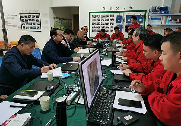 楊百鎖一行首先到無人機航測工作現場,觀看了外業航測工作全過程。隨后到項目組駐地體驗了三維實景模型演示和立體采集系統,并召開座談會,會上物化探院黨支部書記、院長劉寬宏從黨建工作及隊伍專業化建設方面進行了匯報及探討,并提出要圍繞“抓黨建促生產、抓黨建謀發展和抓黨員素質教育”來發揮黨支部的戰斗堡壘作用,引領企業走高技術發展之路,激發青年技術干部科研創新的澎湃熱情,發揮黨員模范帶頭作用,促進隊伍壯大和轉型升級。集團公司領導對物化探院的黨建工作、團隊建設及工作成效等方面給與了高度肯定,認為項目工作思路清晰,方法得當,重視科研工作并有顯著成效,希望在低空大比例尺無人機航空物探取得更大的突破,同時要進一步維持好物化探隊伍的穩定,并運用現代高科技把物化探隊伍做優做強做精。