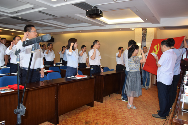 會議莊嚴舉行了的新黨員入黨宣誓儀式,在黨群工作部長華崢帶領下,新入黨的3位同志和全體黨員高舉右手,新黨員進行入黨宣誓,老黨員重溫入黨誓詞,新黨員代表張宏如做了表態發言。