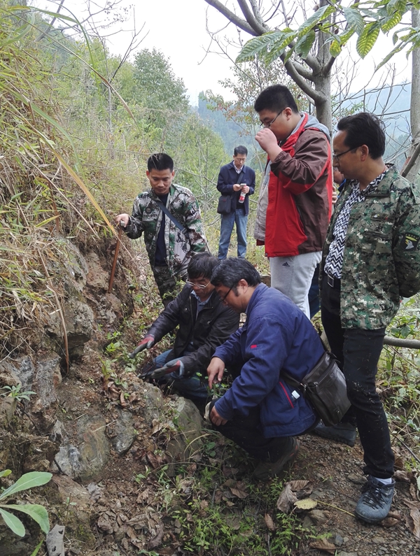 到達(dá)項(xiàng)目部,領(lǐng)導(dǎo)專家們首先對項(xiàng)目目前工作開展情況進(jìn)行了細(xì)致了解,隨后在項(xiàng)目人員的陪同下到野外現(xiàn)場實(shí)地踏勘,對車渡地段AuⅧ-1礦體的不同礦段進(jìn)行詳細(xì)的觀察研究,并與項(xiàng)目技術(shù)成員就礦床成因及成礦規(guī)律現(xiàn)場進(jìn)行了探討交流。