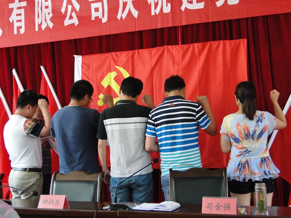 大會(huì)舉行了莊嚴(yán)的新黨員入黨宣誓儀式,在黨群監(jiān)審部部長(zhǎng)華崢帶領(lǐng)下,新入黨的李陽(yáng)、魯坤鵬、程芳芳、閆巖、吳小偉五位同志和全體黨員高舉右手,新黨員進(jìn)行入黨宣誓、老黨員重溫入黨誓詞。新黨員代表李陽(yáng)做了表態(tài)發(fā)言。