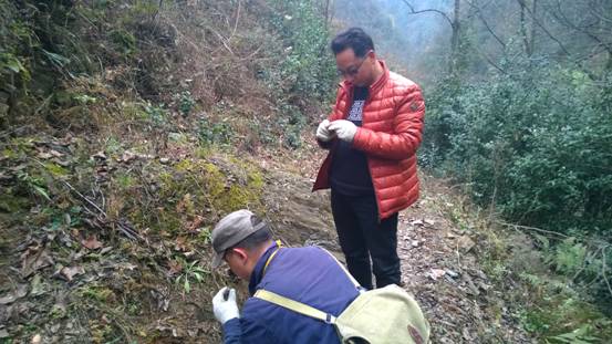 公司總工程師王義忠和總工辦主任涂宏一行,在寧強中壩子項目負責陪同下,從中壩子村移民新區(qū)出發(fā),沿著崎嶇的山路,一路翻過5道梁,越過4條溝;穿青岡林,爬茅草坡;穿過幽靜的小溪,爬過羊腸小路的陡峭,身上的衣服濕了又干,干了又濕,歷時4個小時,上到相對高差300米的龍洞渠溝頭的大梁,追索寧強中壩子項目在后期工作中發(fā)現(xiàn)的重晶石礦點。