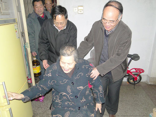 當得知退休黨員萬忠誨因車禍致殘長年臥床,其妻子腿腳不便兩人都靠輪椅活動的情況后,黨委書記趙建輝緊握老人的手囑咐他們要注意保暖和安全,平時有困難要主動跟大隊黨委聯(lián)系,萬忠誨的家人對組織上的關心表示感謝。